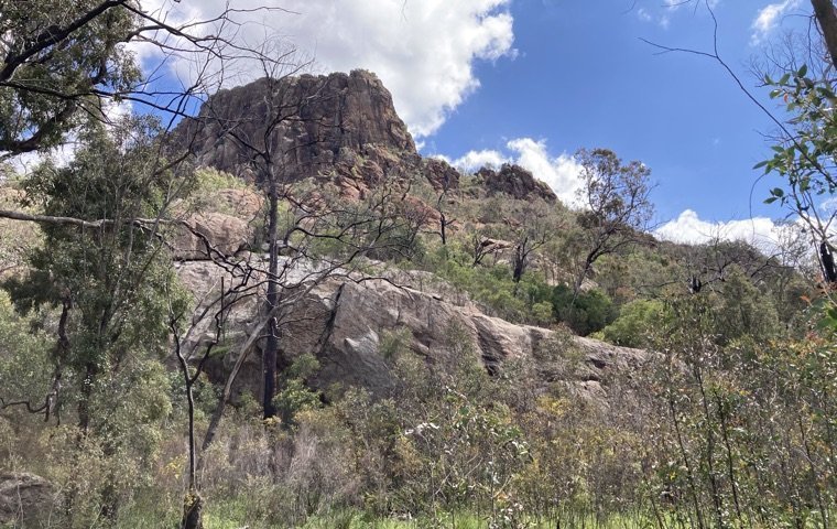 But we saw Coonabarabran through a different lens. This is where the family lived, for generations. The former houses have since been replaced or stand as ruins. On our first day we walked around Timor Rock — a massive formation opposite the old farm where my Australian mother-in-law’s grandfather lived. As a kid, she was never allowed to walk around Timor Rock, which is precisely why she does it now. So the entire extended family set off bushbashing through the scrub. There was no path. What there was, was a large kangaroo that had apparently just managed to drag itself into the dense undergrowth after being hit by a car. It reared up one last time at the approaching group of hikers, then collapsed with a heavy groan.