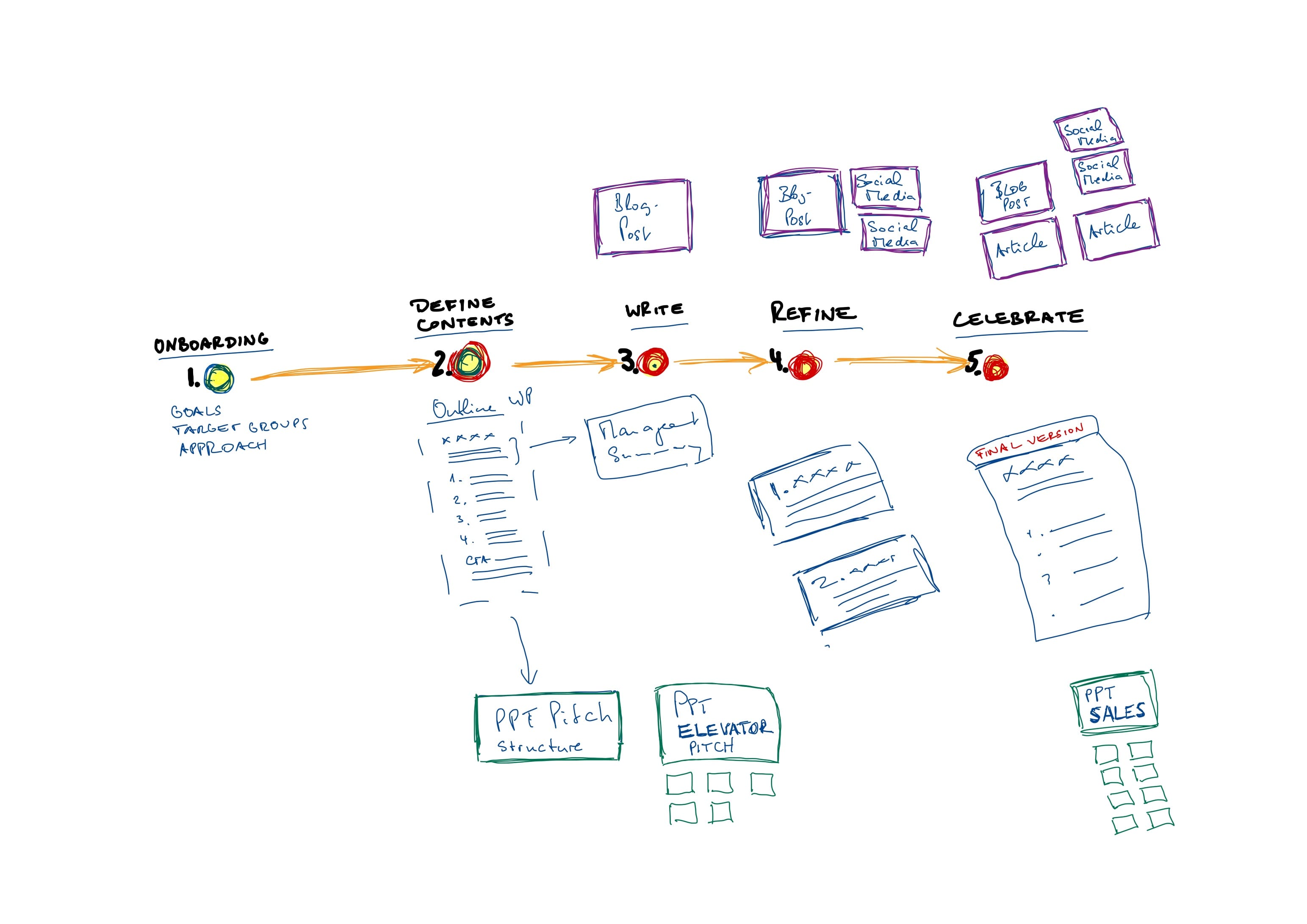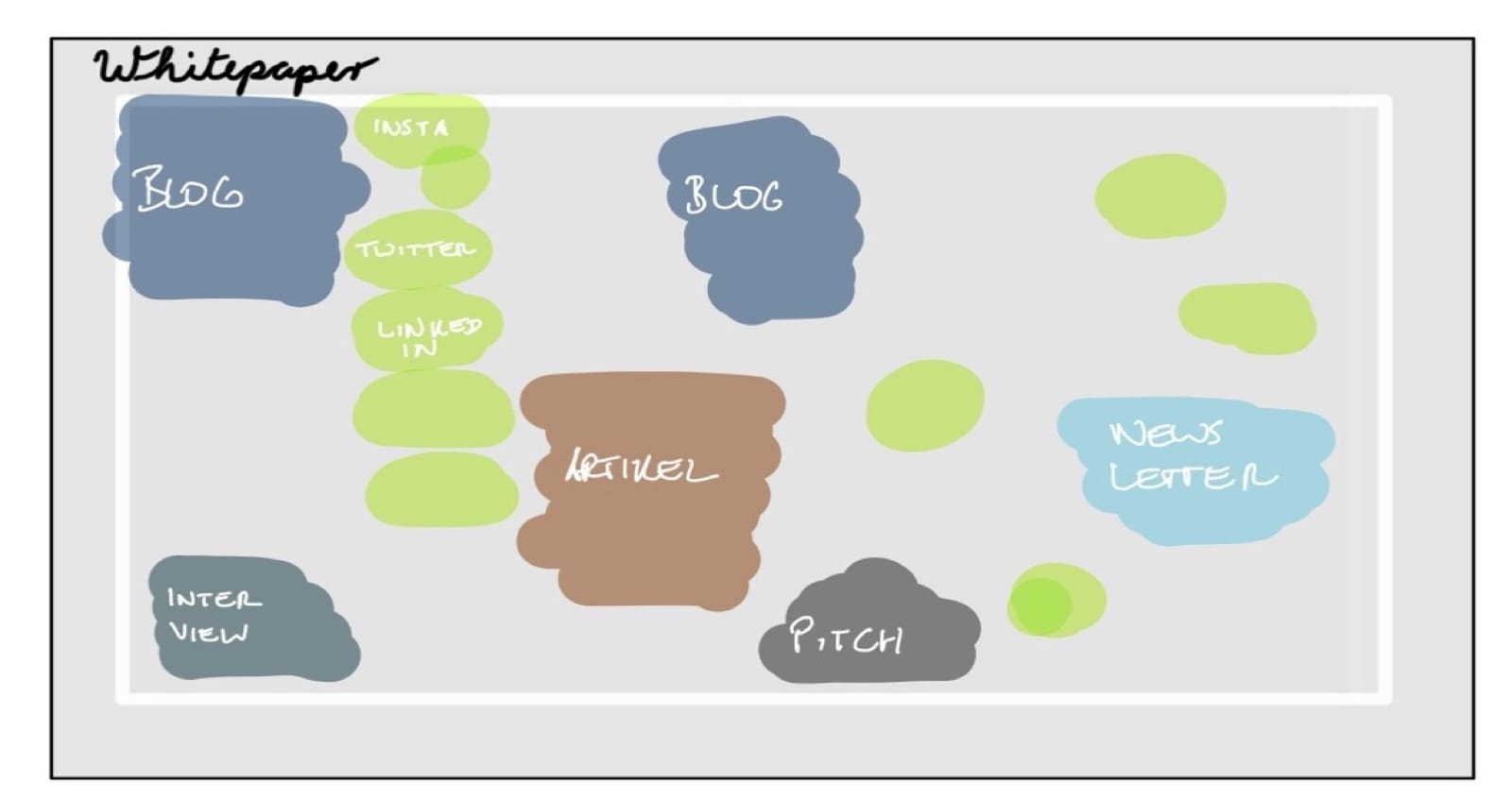 So far, we have only discussed the text. Of course, the whitepaper should also be visually appealing. That’s why I recommend working on graphics during the content creation process. I enjoy creating sketches and to visualize unexpected connections. Depending on your setup, I support your graphics and design department with briefings (if you want to do it in-house), but I also offer you a publishable whitepaper in collaboration with an experienced graphic designer according to your corporate identity.