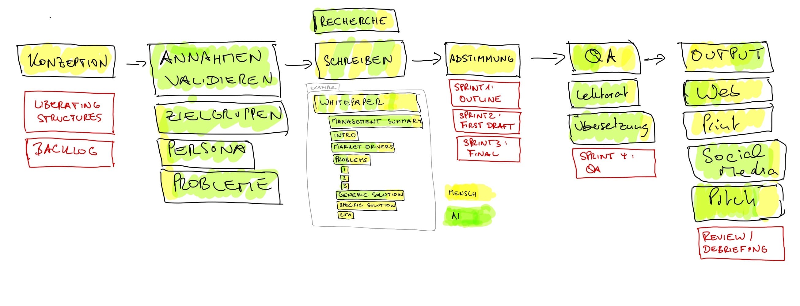 What is special about my approach is the focus on an agile process: It is not just about “flexibility,” but about “courage” (getting to the heart of the matter, no hiding behind hackneyed phrases), “openness” (being able to tolerate and address critical questions from the customer’s perspective), “respect” (aiming at eye level), “conscientiousness” (details are the spice of life!), and focus (benefit, benefit and deadlines, deadlines!). To make progress efficiently, I use agile methods and artificial intelligence tools.